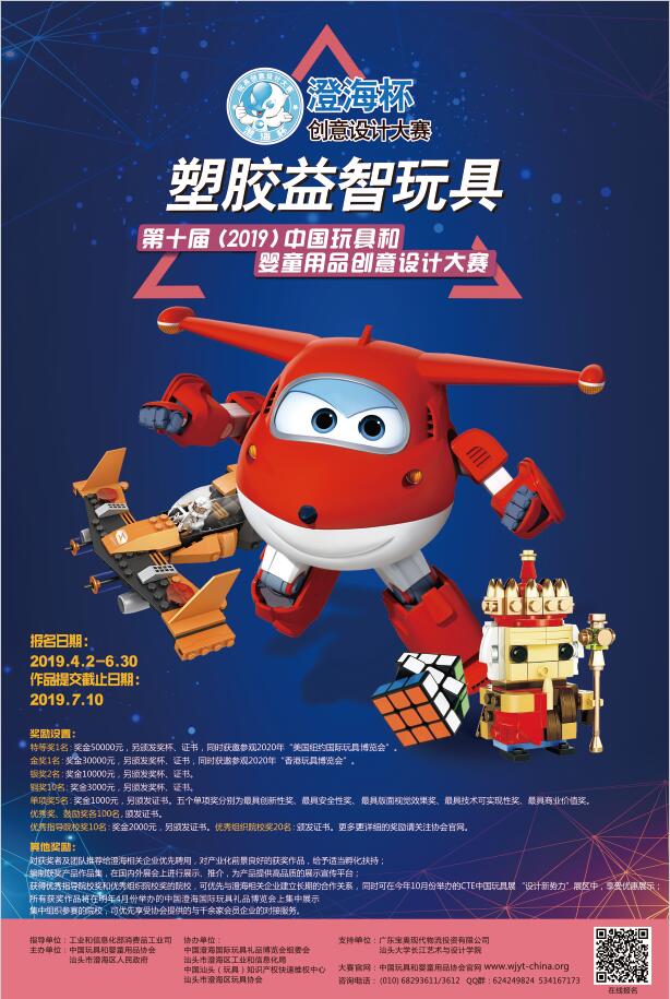 为不断提升我国玩具和婴童用品行业的设计研发水平,中国玩具和婴童用品协会自2010年起,每年定期举办全国性的创意设计大赛(以下简称“大赛”),现已成功举办九届。本届大赛由工业和信息化部消费品工业司指导,中国玩具和婴童用品协会和汕头市澄海区人民政府共同主办。目前,大赛已成为中国玩具和婴童用品行业专业性最强、参赛范围最广和影响力最大的赛事。