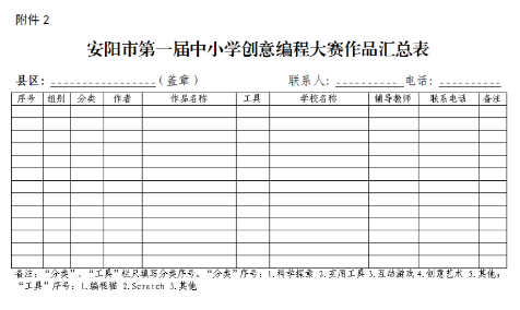 1.安阳市第一届中小学创意编程大赛作品登记表
