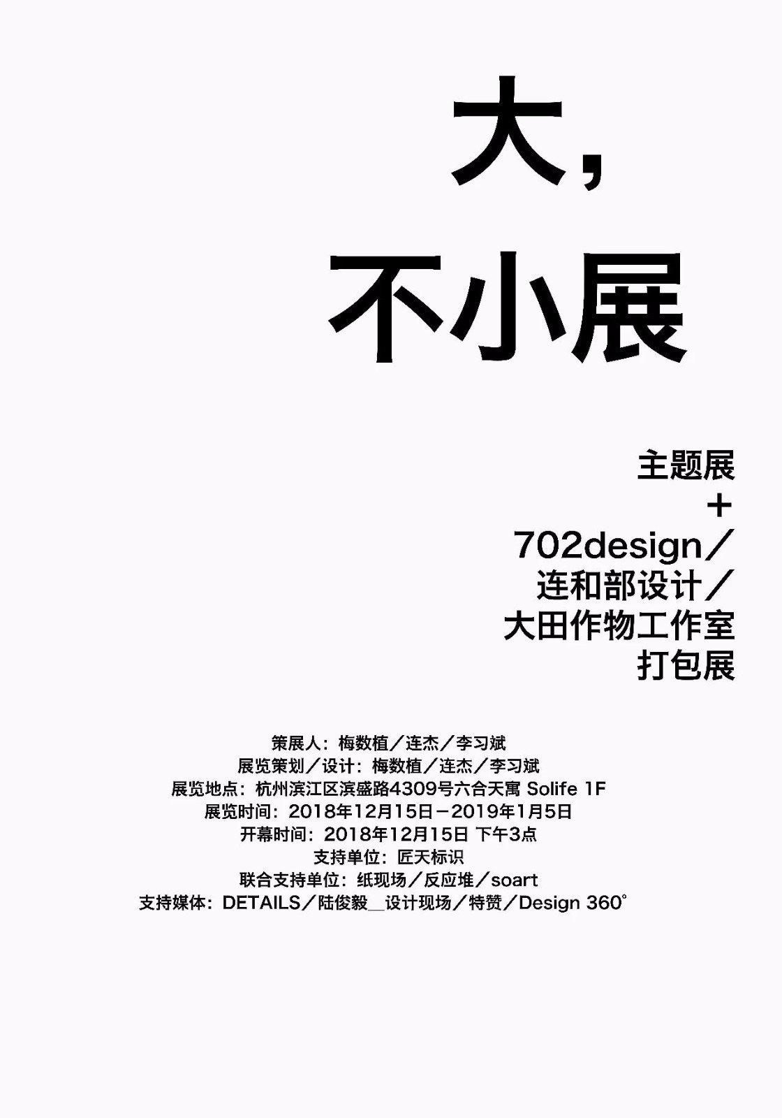 大,不小展最终分享给各位,一起探讨在西文设计构架体系语境中还原与建立中文构成的视觉呈现状态。此次展览不是输出一场论证结果,而是通过一种方式提出可能性,从而引发开放性的探讨与思考。