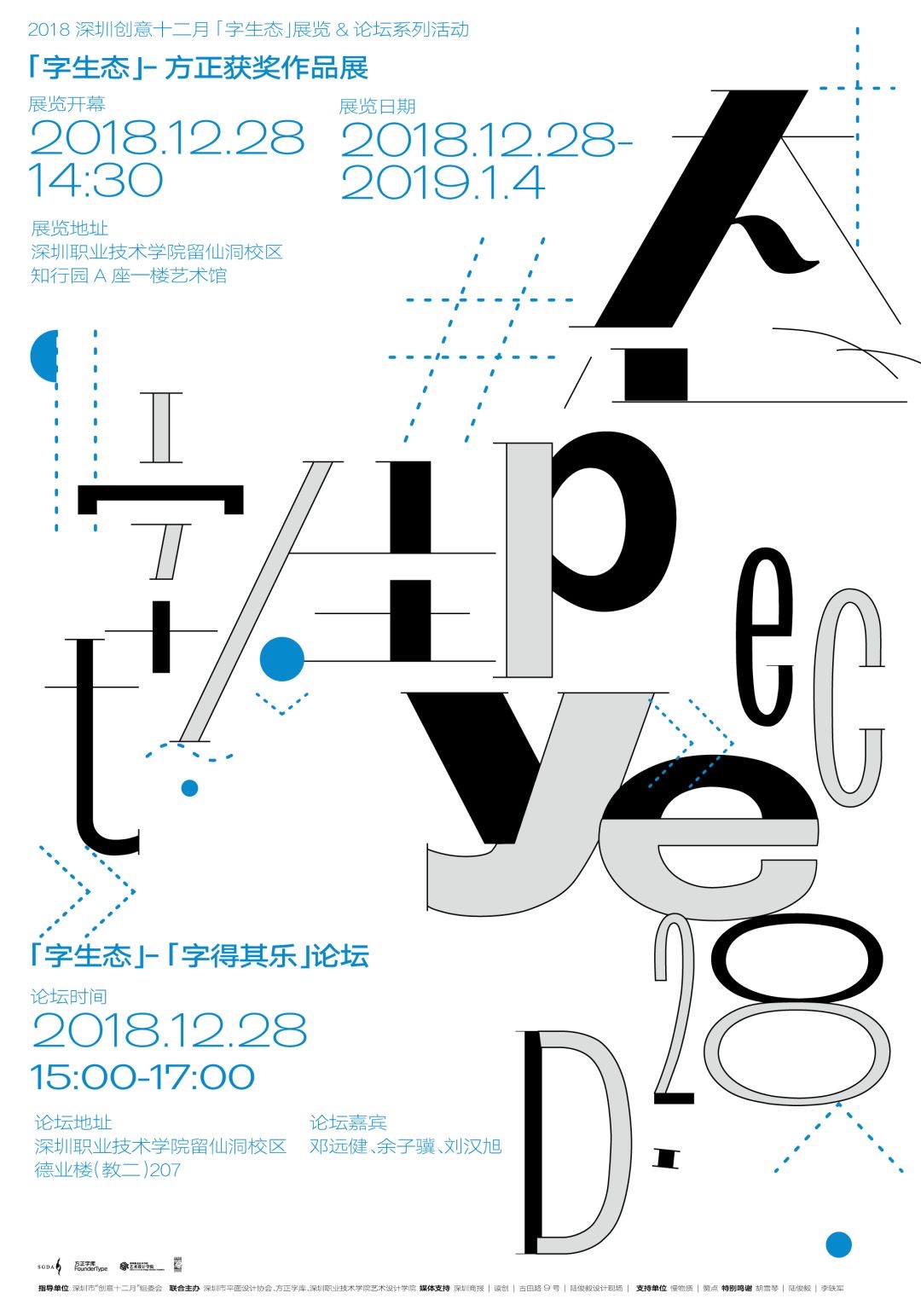 2018年12月28日,由深圳市平面设计协会、方正字库与深圳职业技术学院艺术设计学院共同举办的“字生态 – 文字设计系列活动”,将在新的语境和文字生态下,回顾当代中国汉字设计成果、展示传统汉字图形解构与美学再造路径、探讨文字设计的多维呈现与全新价值输出可能。