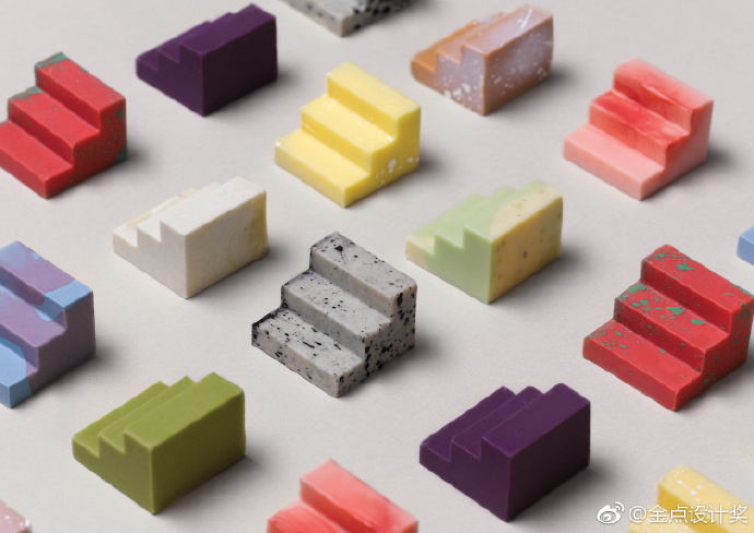 今年复审名单中有不少亮眼的国际作品,其中来自意大利创意应用实验室Fabrica的计划“每个人的休息室”,由设计师陈韦翰和Alexis Gallo打造,这个计划透过参与者用身体及颜料为媒材传达讯息,最后整理成视觉图像,探讨人与人之间在没有使用语言状态下如何交流。澳大利亚设计公司Universal Favourite的“Complements”运用3D列印制作巧克力模具,并与糕饼店联合推出色彩缤纷的巧克力。这组巧克力以阶梯作为造型,灵感来自与客户合作互补的概念,当两块巧克力互相组合可成为完美立方体,象征与客户合作顺畅、关系相扣连。