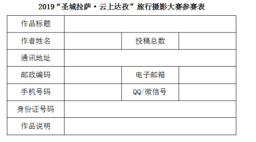 (1)邮箱投稿方式:(4月20日-5月31日)组照请标明序号,并完整填写参赛表格,如实提供个人信息,连同作品压缩打包后发送至指定投稿邮箱:dazisheying@vip.163.com,邮件主题统一为“圣城拉萨·云上达孜”摄影大赛投稿。每人限投稿10幅。
