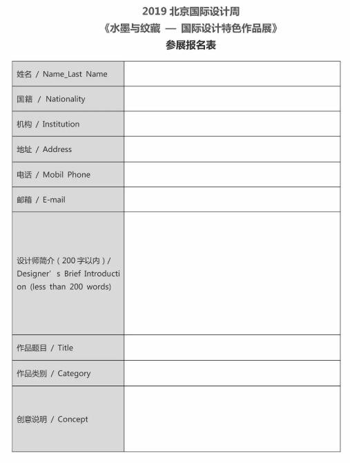 面向全球征集。凡从事相关设计工作的个人、机构、专业院校师生,其创作作品均属征集的对象。同时,组委会将精选第一、第二届当代国际水墨设计展、纹藏中国设计展部分优秀作品与征集入选作品同期展出。
