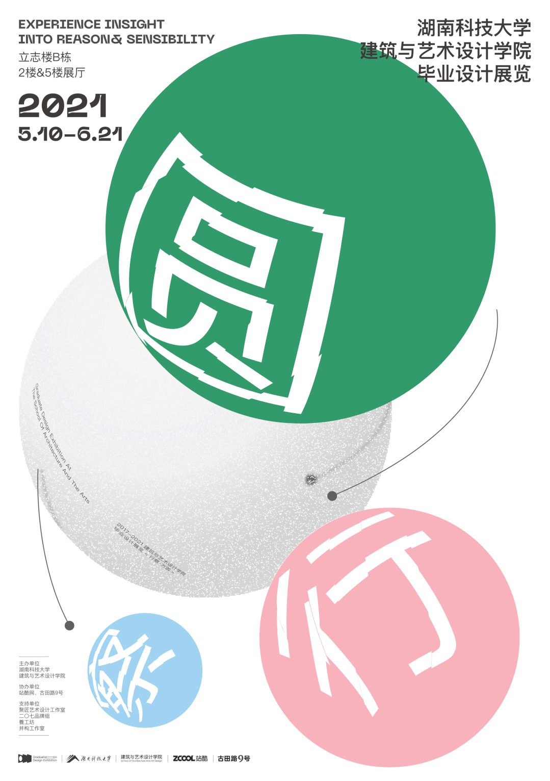 2021毕业季涵盖了设计展览、创意集市、毕业晚会三大板块的活动,从2021年5月10日到6月21日,持续一个半月的时间。三大版块的展出时间段为: