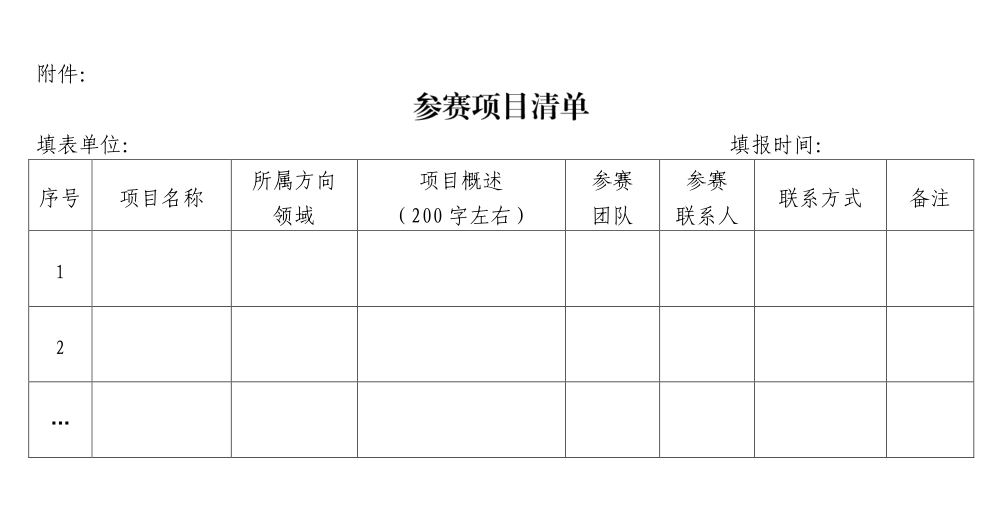参赛选手参照大赛五大方向合理确定参赛方向,填写《参赛项目清单》(附件)在对应五大方向牵头单位进行报名,各牵头单位统一汇总后报县政府初审,初审结束后入选征集的参赛选手在牵头单位指导下通过大赛官网(https://zghscyds.welian.com)进行网上报名。