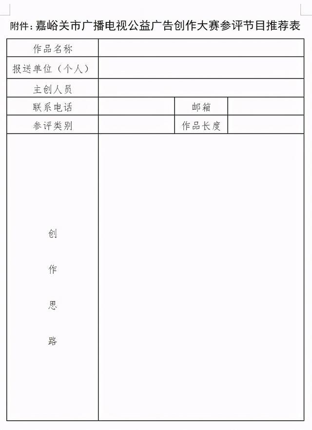 附件:嘉峪关市广播电视公益广告创作大赛参评节目推荐表