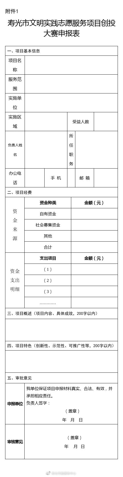 附件:1.寿光市文明实践志愿服务项目创投大赛申报表
