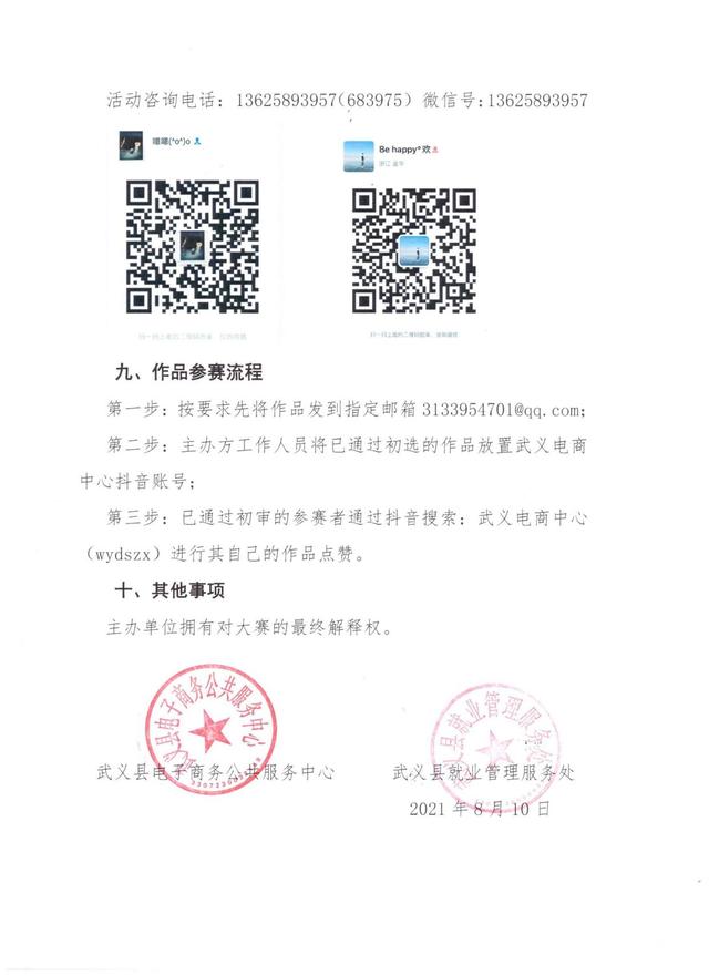 为营造武义电商创业氛围,实现武义电商高质量快速发展。经研究,武义县电子商务公共服务中心将联合县就业管理服务处举办“武义有好物——短视频创意创业大赛”,具体事项如下: