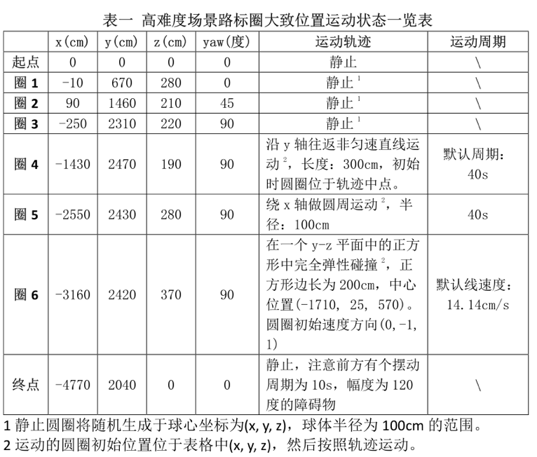 (1)考虑到SLAM系统的难度,本届比赛将开放飞机的位姿结果,但鼓励各参赛队伍采用SLAM,VIO等技术估计无人机位姿。