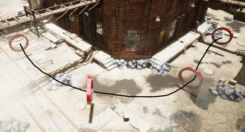 2021年采用UE4 + AirSim的仿真场景进行比赛;各比赛队伍根据比赛地图要求编写程序操控无人机到达终点。本次比赛共发布两个不同难度场景,即废墟情景和公园赛道场景,其中:难度较高的废墟场景包含3个静态圆圈,3个动态圆圈和一个摆动障碍物;难度较低的公园赛道场景包含7个圆圈。参赛队伍可挑战废墟情景和公园赛道场景之一,亦可同时挑战两个场景。
