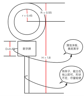 线下赛将仍然采用钻圈,前面7个圈采取竞速策略,后面设置障碍物,示意图如下,具体圈的数量和摆放待仿真赛结束会有更详尽的文档发布。下图仅为示意图:
