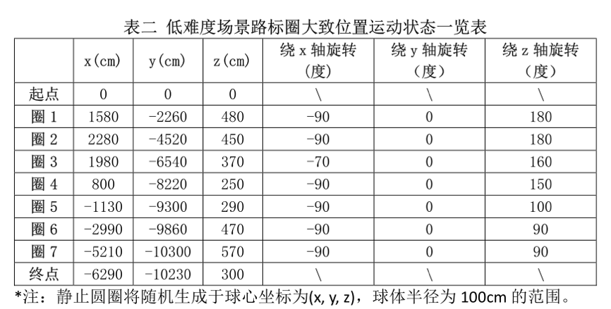 4.表一、表二中的静态圆圈随机位置产生与Content/Files/ 文件夹中的 seed.txt 中的数值绑定(会在一定范围内随机)。参赛队伍可以尝试不同的数值来测试飞行效果。