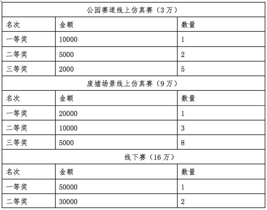 在竞赛颁奖仪式上为获奖的参赛队伍统一颁发获奖证书和奖金(所有奖金不叠加,以奖金高者为准)。奖金设置如下: