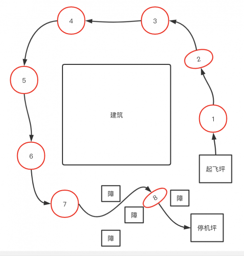 选手通过编写程序,打包应用程序控制无人机从1号停机坪起飞,依次钻过所有圈,并在最终的1号停机坪落下,中间无碰撞,视为完成任务,记录时间,时间较短者为优。