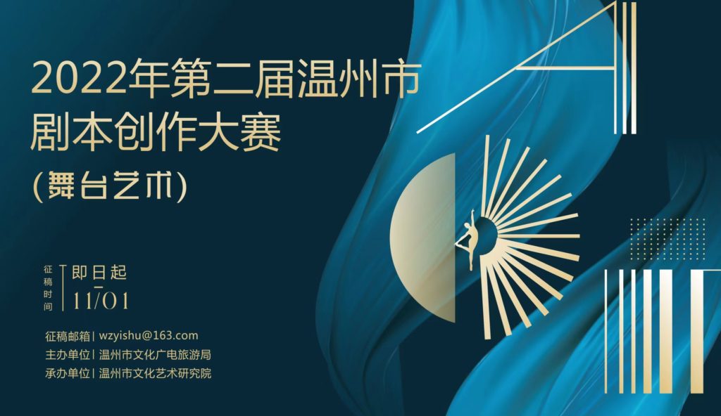 根据中共浙江省委部署,忠实践行“八八战略”、奋力打造“重要窗口”、高质量发展建设共同富裕示范区的要求、高水平建设新时代文化温州,“第二届温州市剧本创作大赛(舞台艺术)”于2022年7月正式启动,旨在全国范围内挖掘优秀剧本,为进一步创作文艺精品打好基础,为发展社会主义先进文化、建设社会主义文化强国做出温州贡献。
