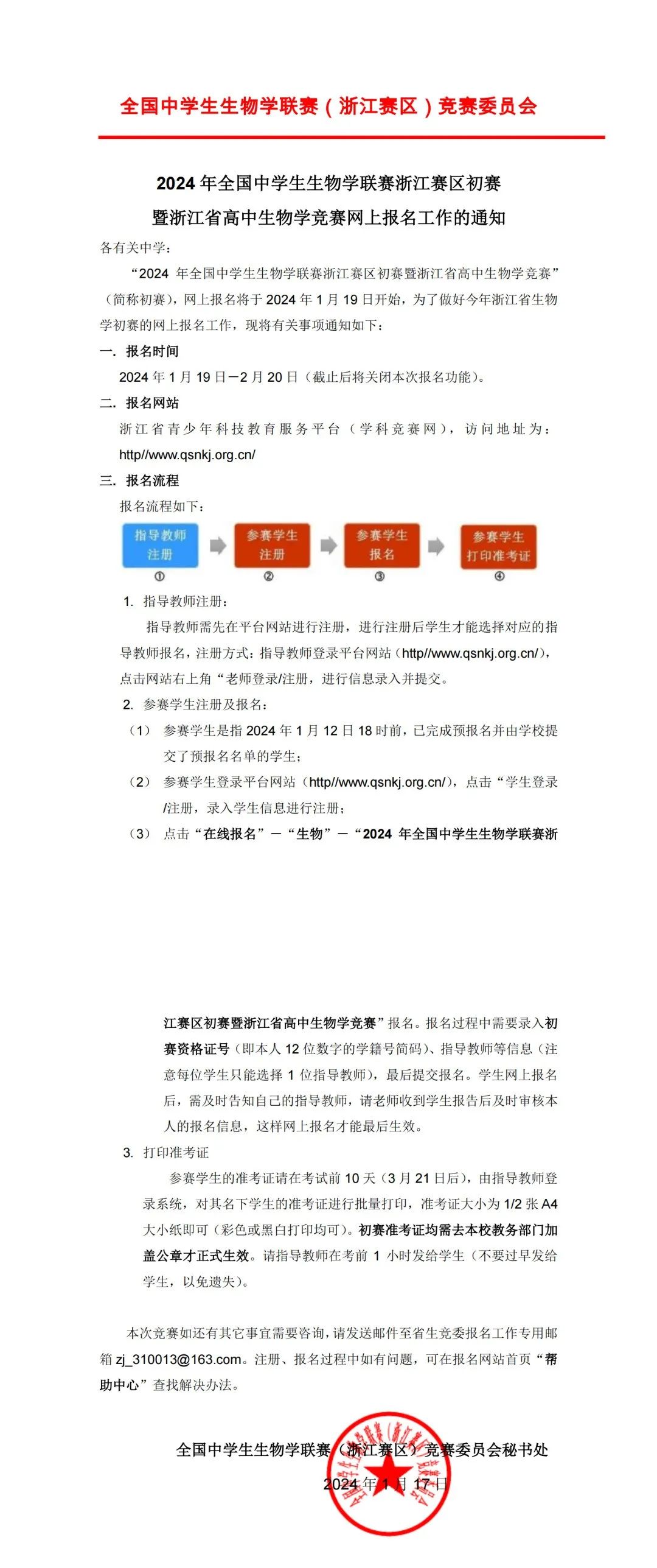 2024年全国中学生生物学联赛浙江赛区初赛暨浙江省高中生物学竞赛网上报名工作的通知