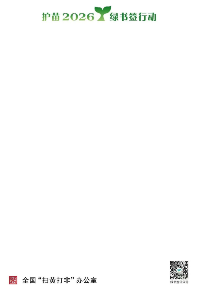 为深入推进“护苗”专项行动,倡导绿色阅读、文明上网,增强未成年人对非法出版物及有害信息的鉴别能力和防范意识,发动社会各界积极加入“护苗”行列,营造护助未成年人健康成长的浓厚氛围,即日起,江苏省“扫黄打非”办公室组织开展2026年“绿书签行动”海报设计征集活动。