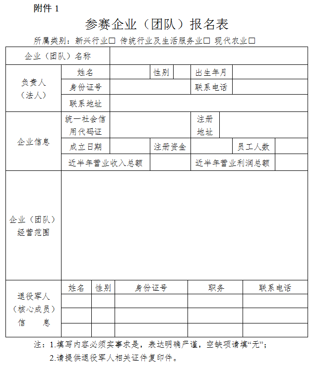 廊坊区域内在中华人民共和国境内市场监管、民政部门注册的合法企业及机构(含个体工商户),截至2021年1月1日注册不超过1年的,可以以参赛团队身份参赛;核心团队成员不少于3人,其中至少1名为退役军人。参赛退役军人须为团队组建的发起者或团队核心技术发明人员。