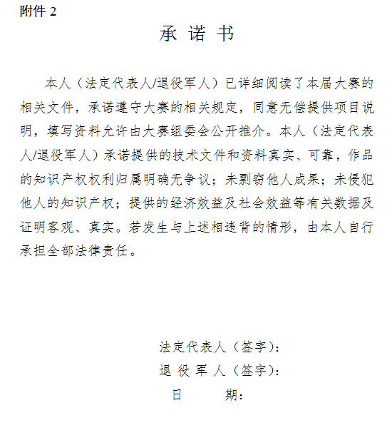 报名参赛企业(团队)应符合国家法律法规和国家产业政策,经营规范,社会信誉良好,无不良记录,不侵犯任何第三方知识产权,且未曾在往届全国退役军人创业创新大赛决赛中获一二三等奖。参赛企业独立创始人(或持股份的联合创始人)、团队核心成员必须为退役军人。